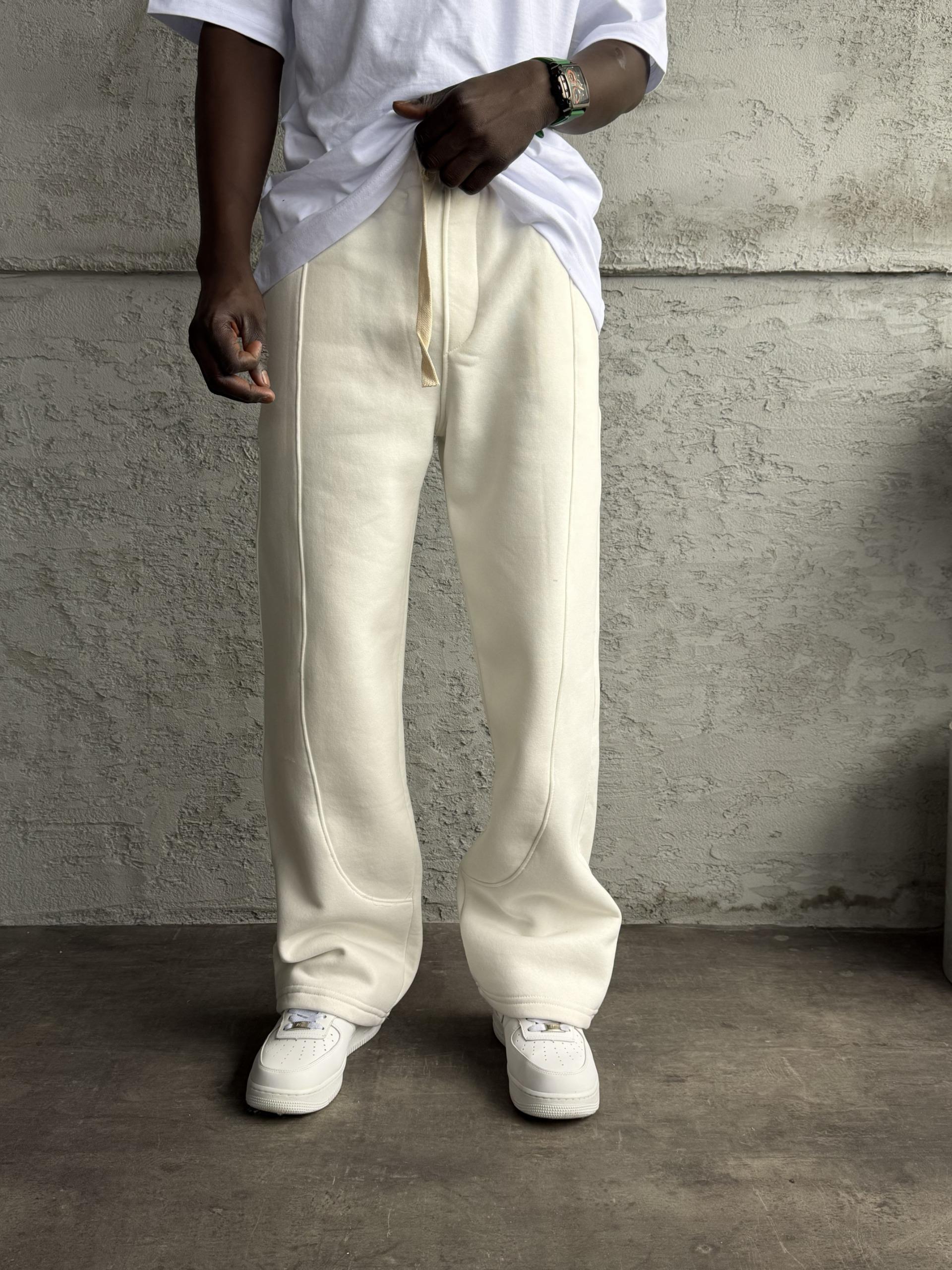 Beyaz Dikiş Detaylı Baggy Eşofman
