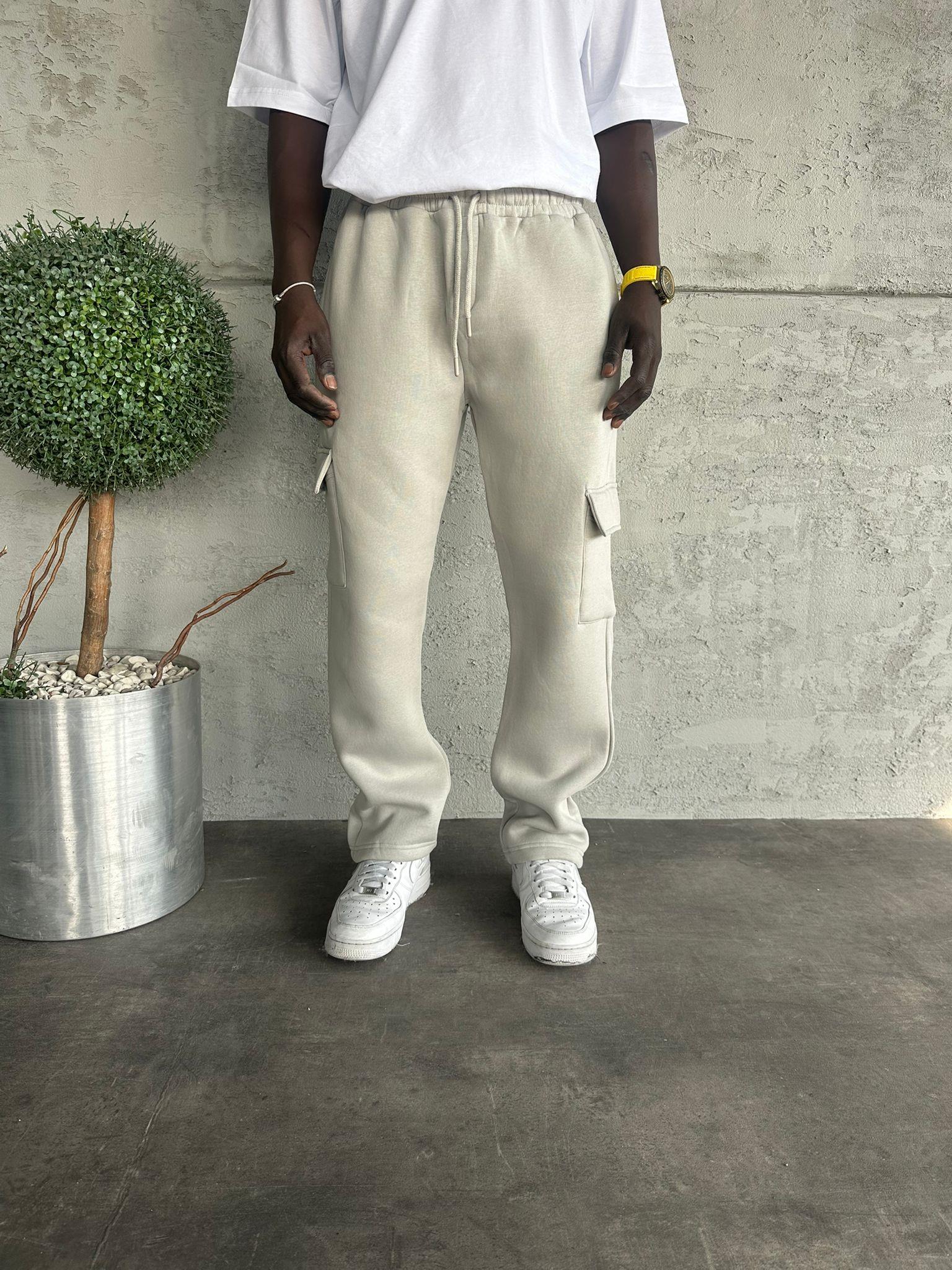 Gri 3 İplik Şardonlu Kargo Cep Eşofman
