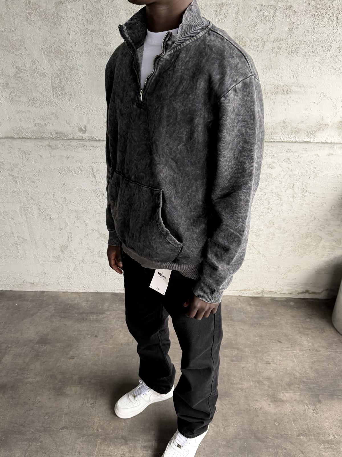 Füme Yıkamalı Fermuarlı Sweatshirt