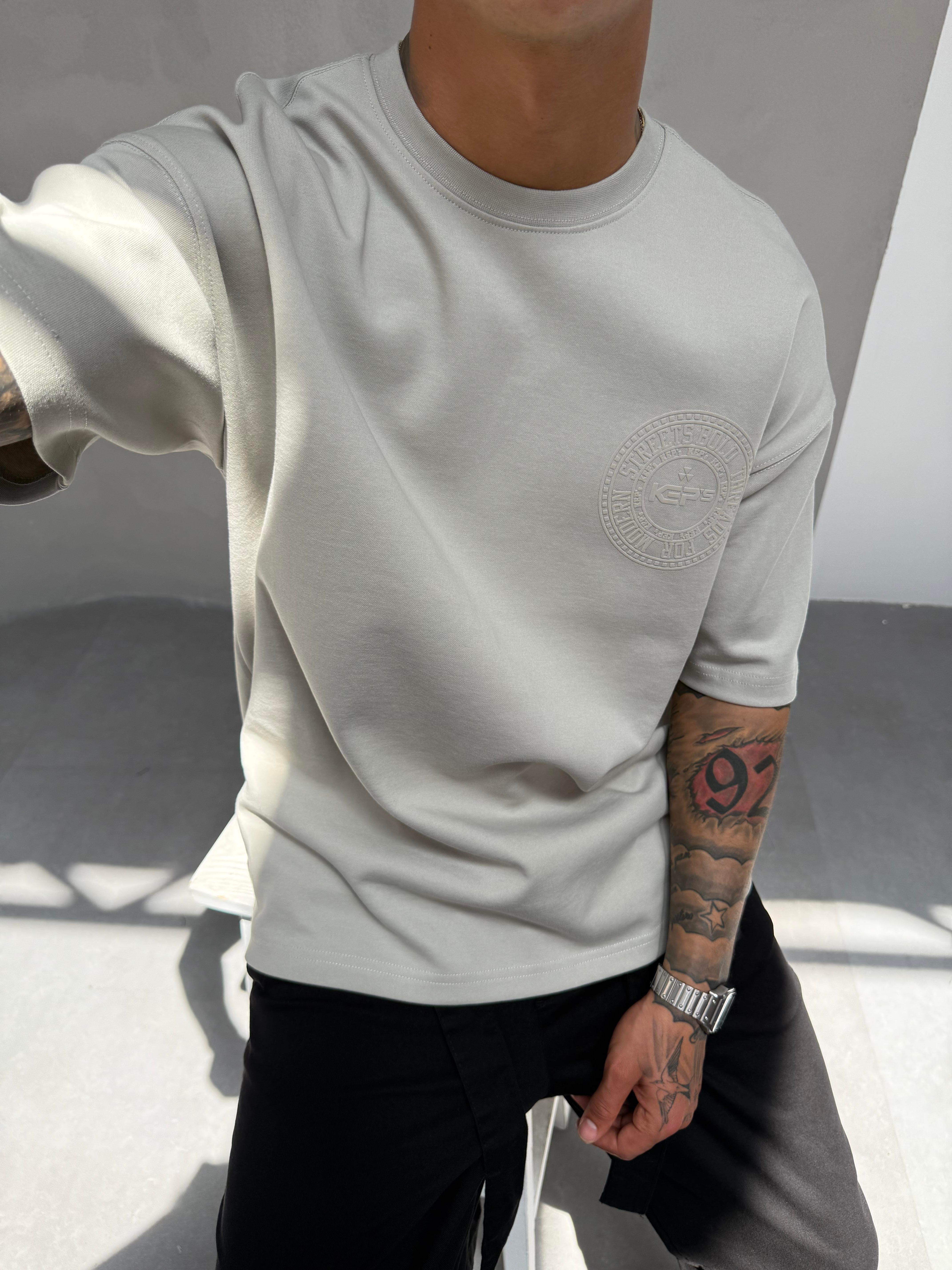 Küf Gri Kabartma Baskılı Oversize T-Shirt