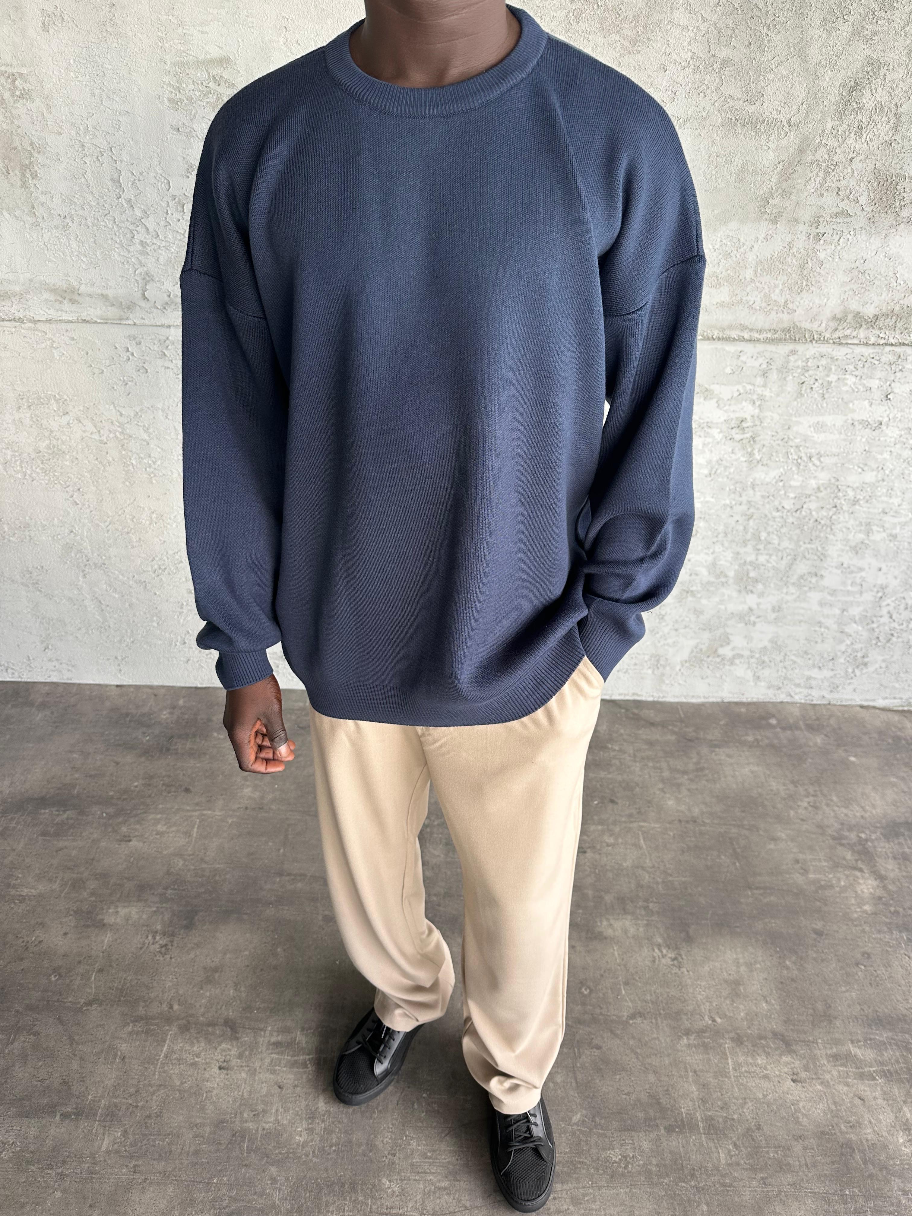 Lacivert Bisiklet Yaka Basic Triko Kazak
