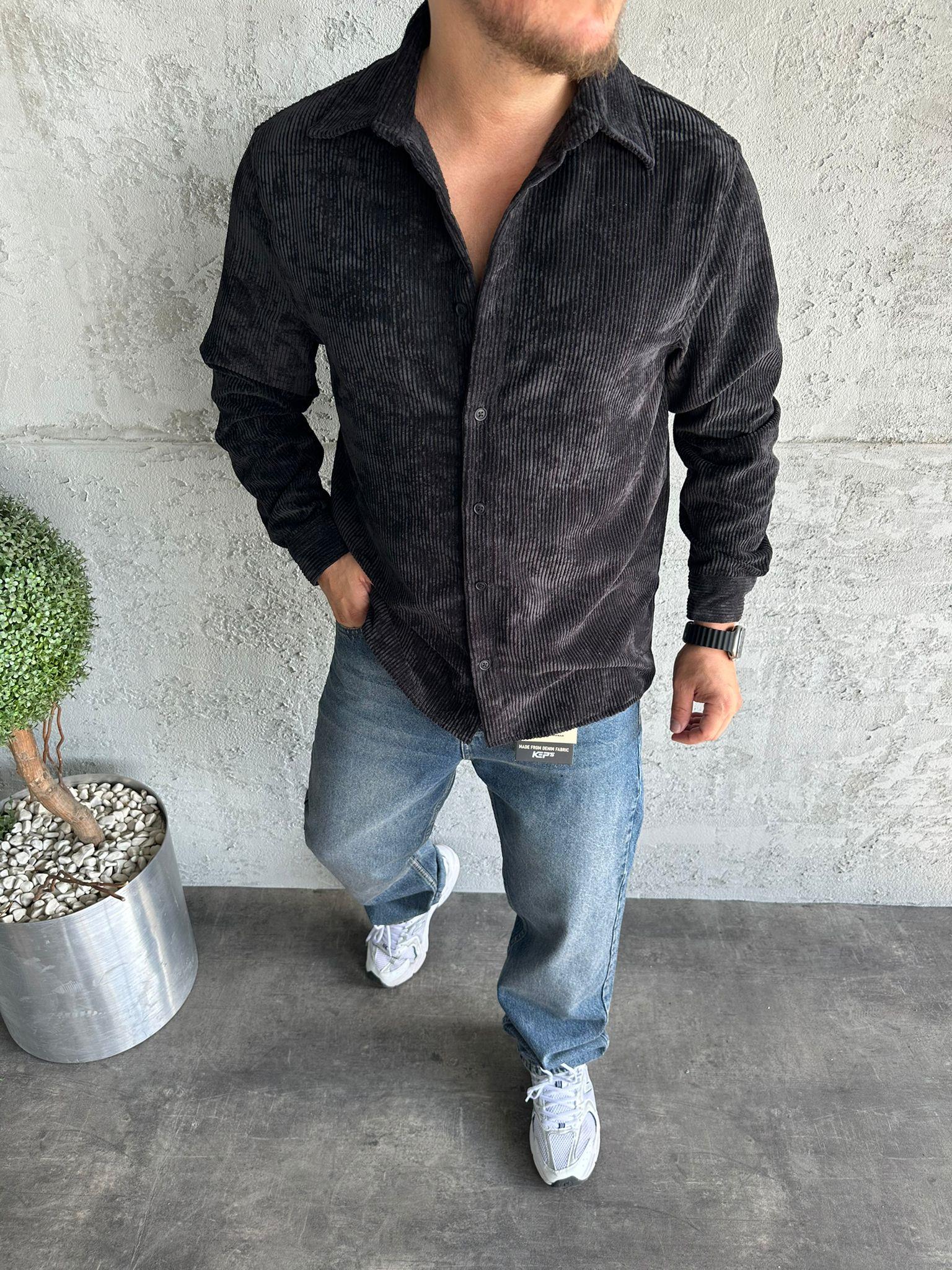 Siyah Kadife Gömlek (YB-257001-SİYAH-S)