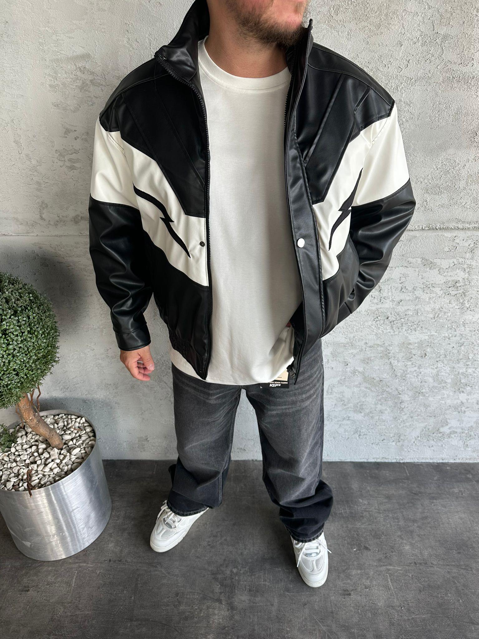 Siyah Parçalı Deri Ceket