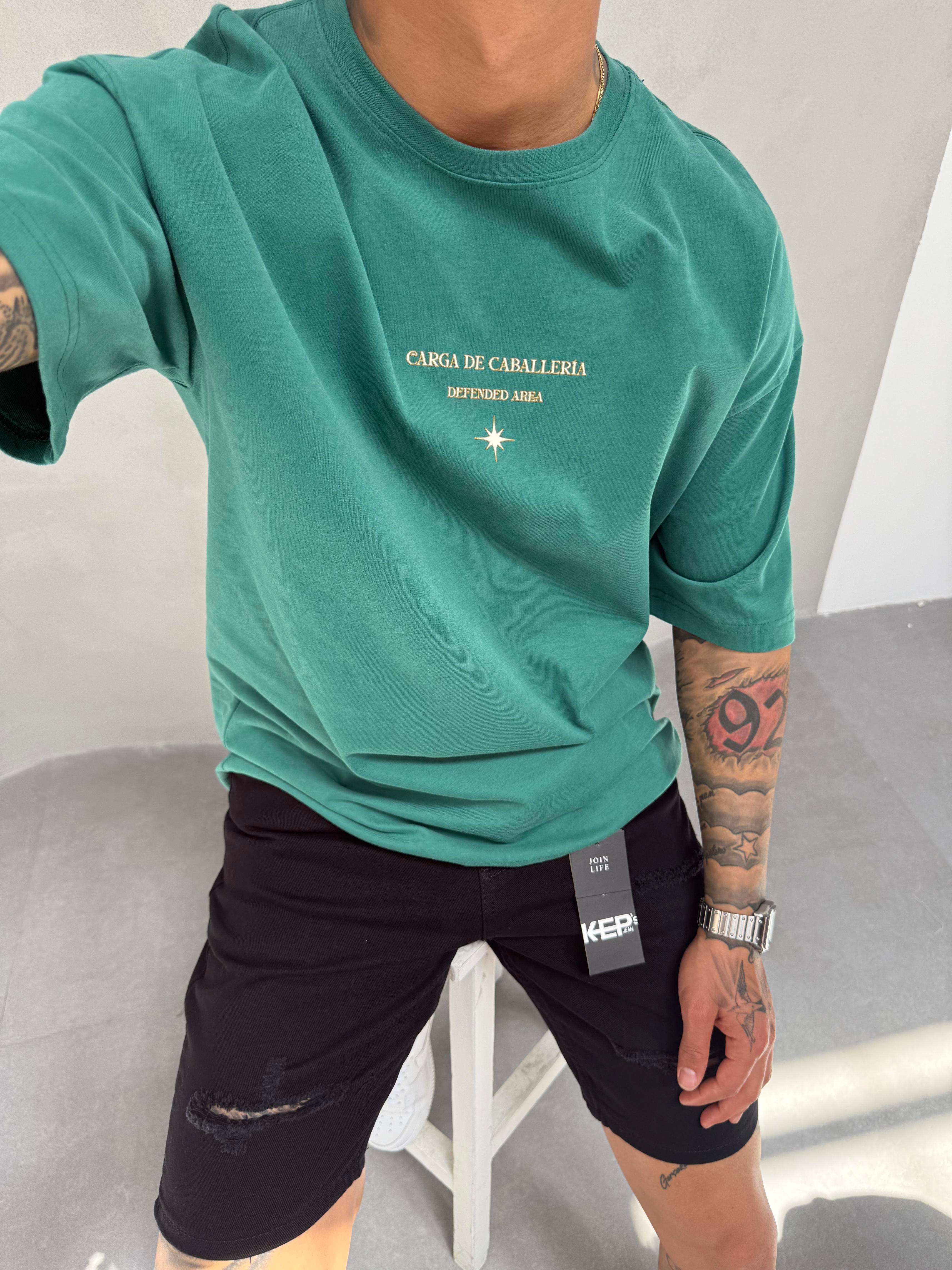Yeşil Oversize Baskılı T-Shirt